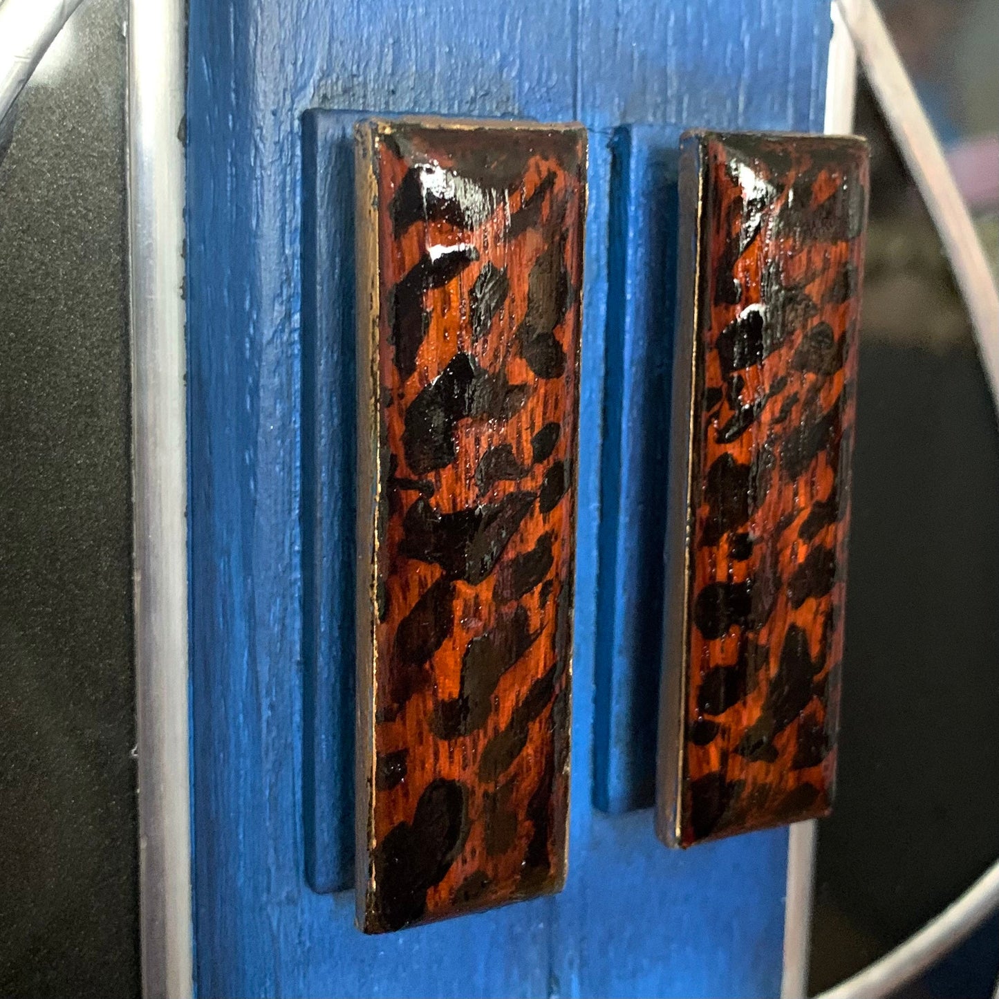 The little handles have been hand painted in a tortoise shell design, to create an eye catching feature of them against the matt blues.